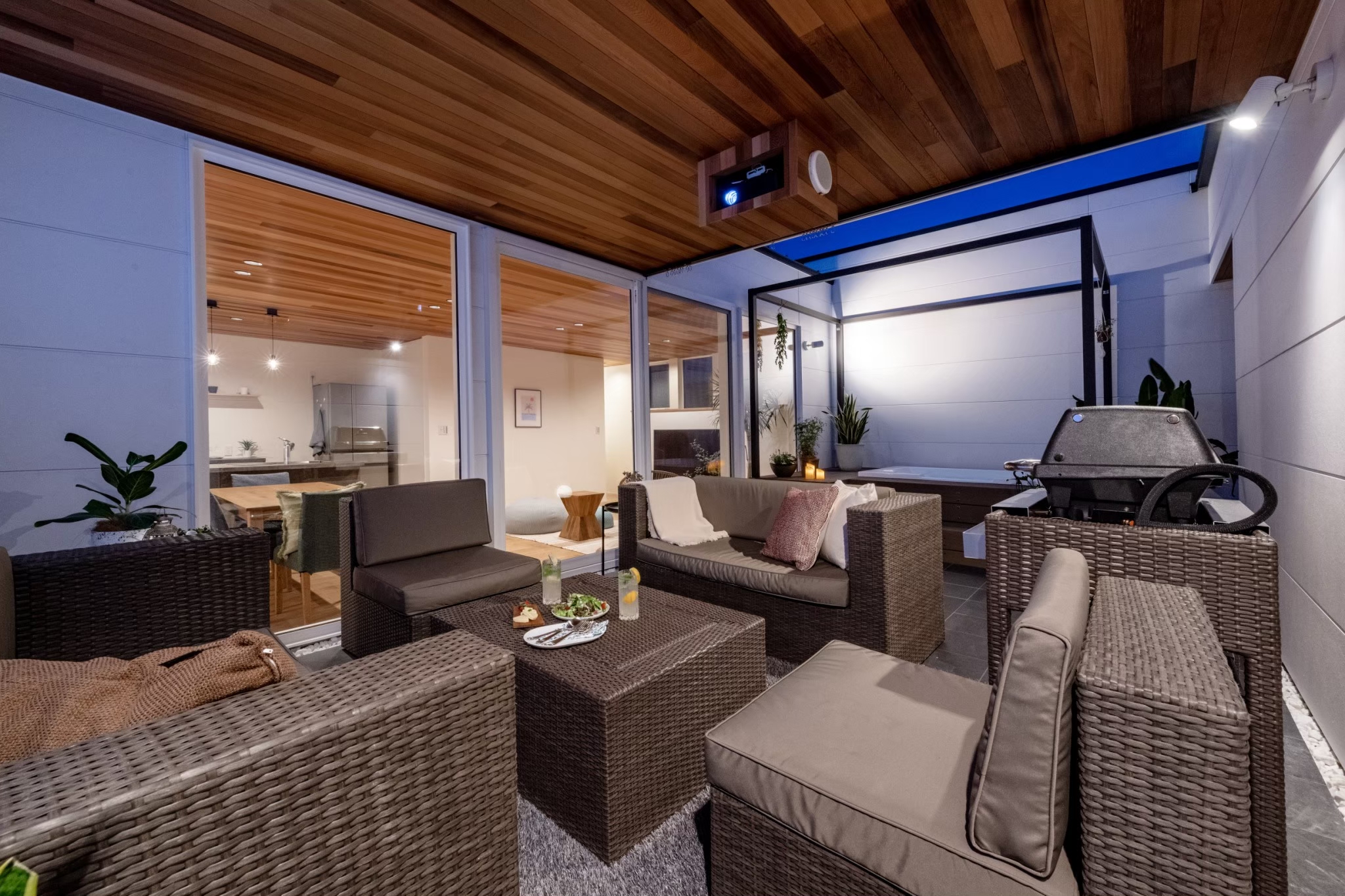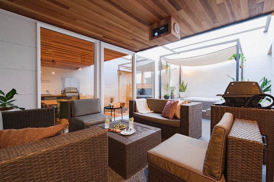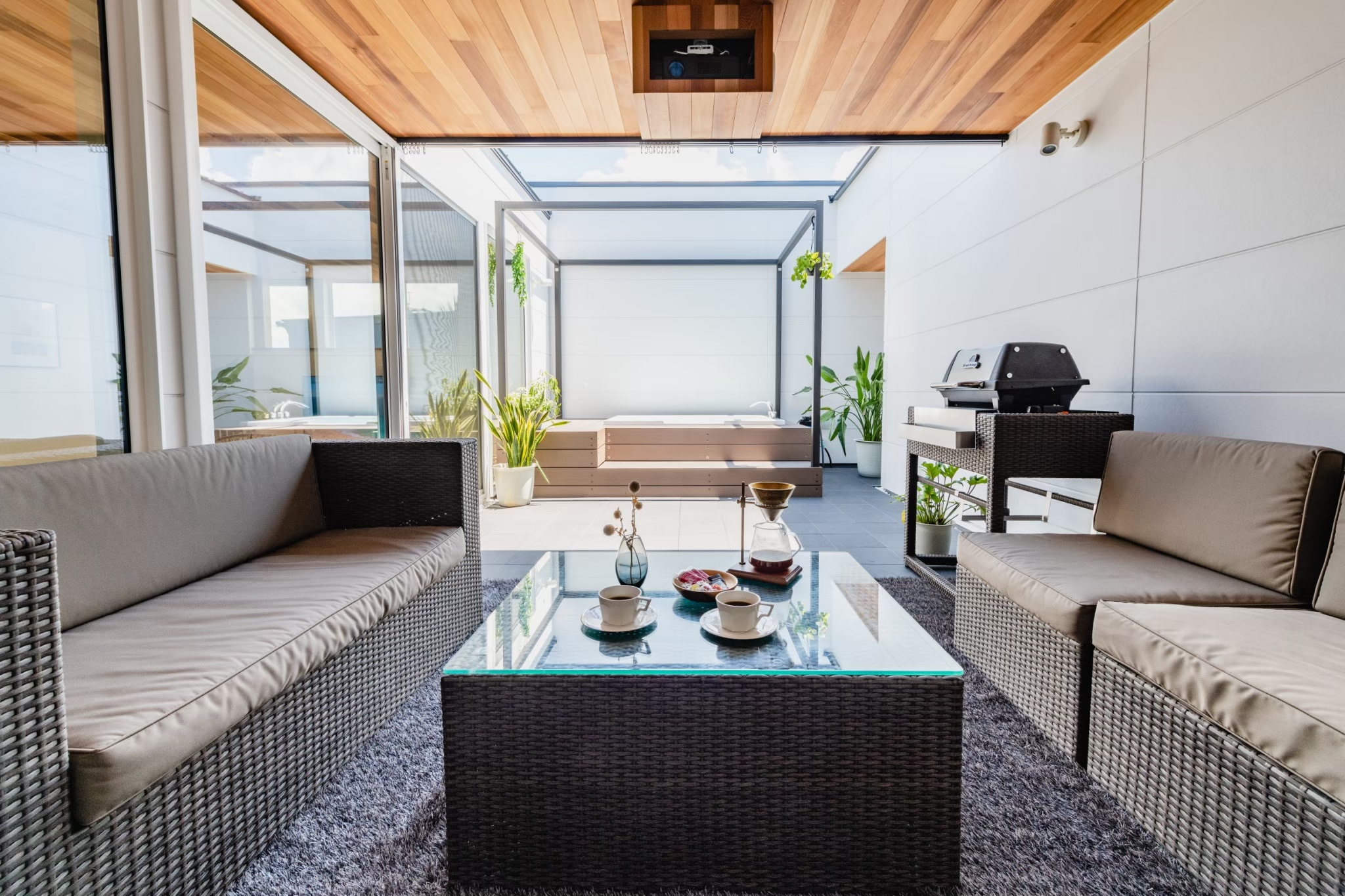 天候や季節に左右されない屋根付きのアウトドア・テラスがあります。