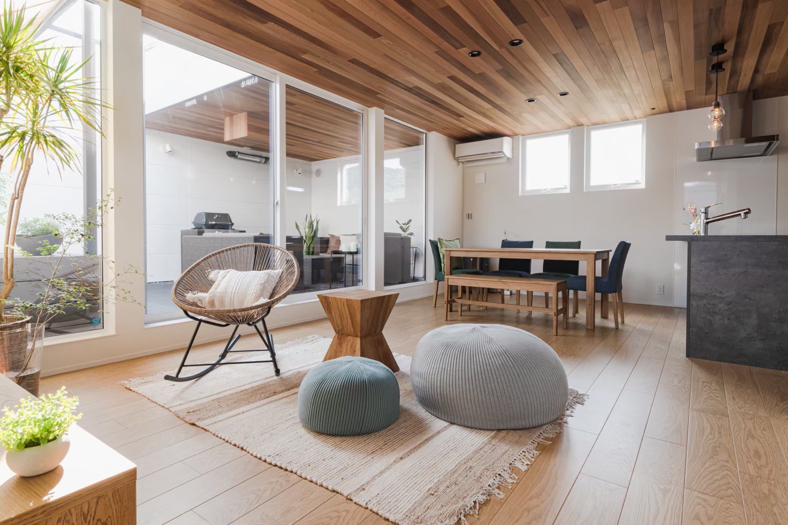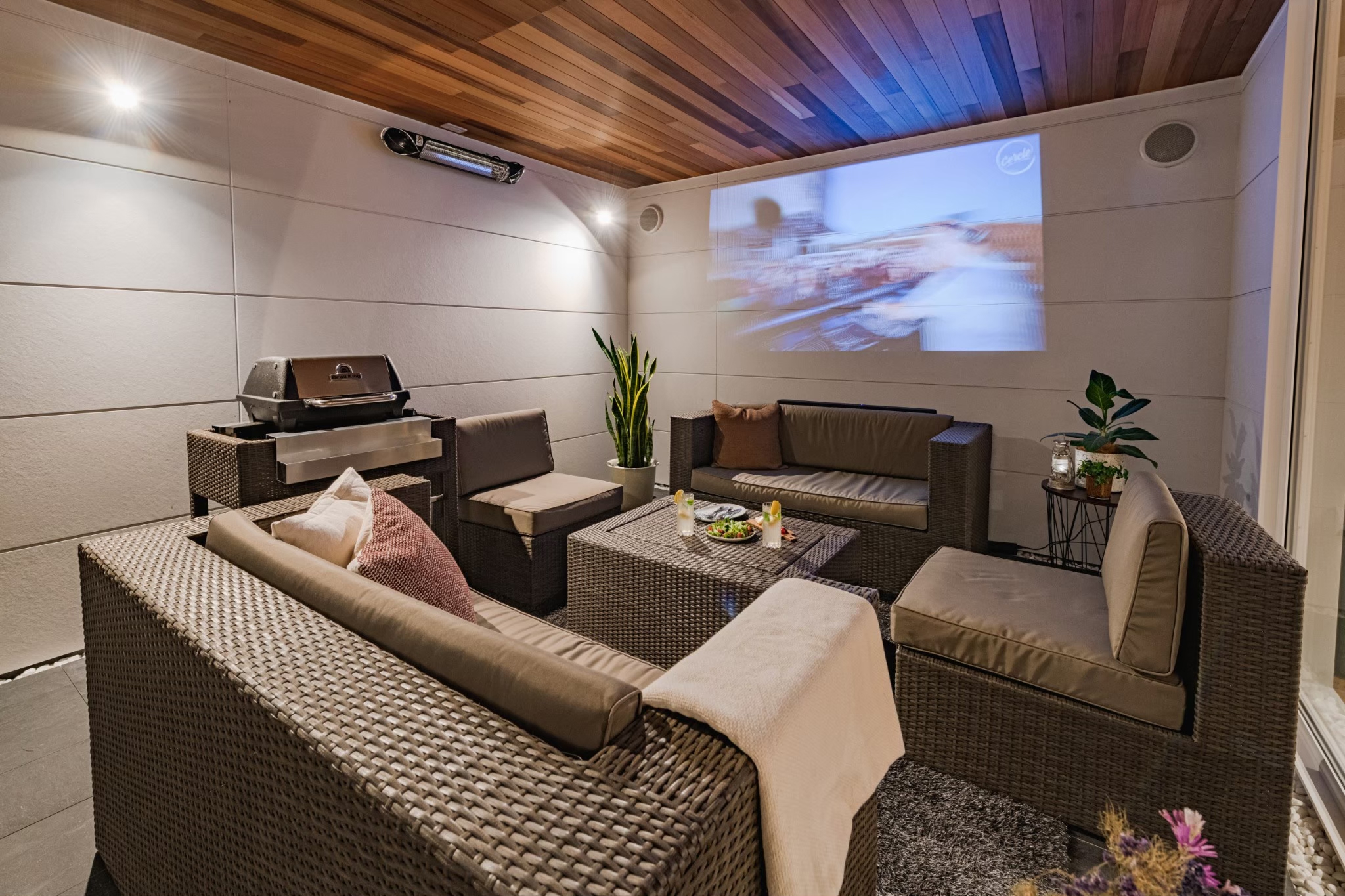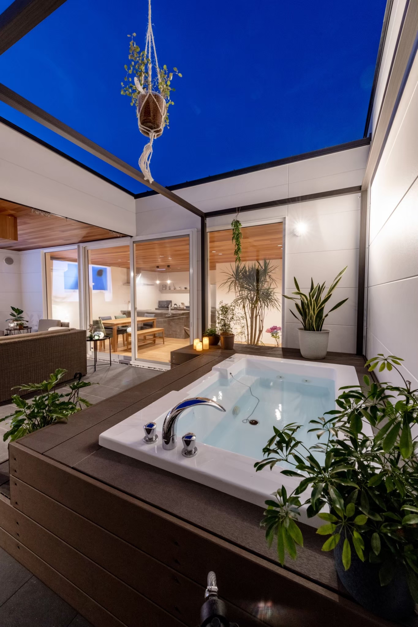 天候や季節に左右されない屋根付きのアウトドア・テラスがあります。