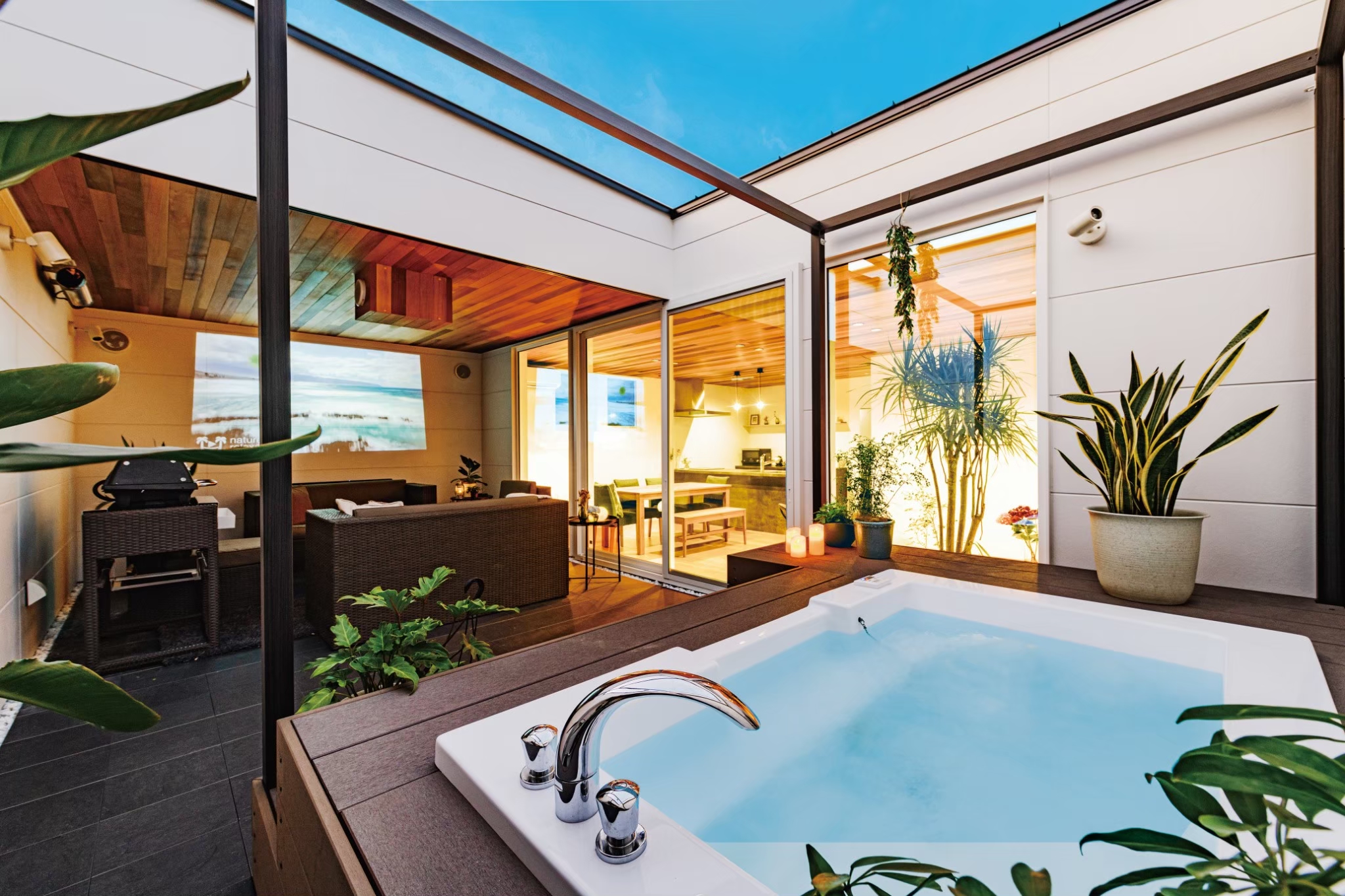 本格的なBBQが楽しめるガスグリルやジェットバスに浸かりながら、
